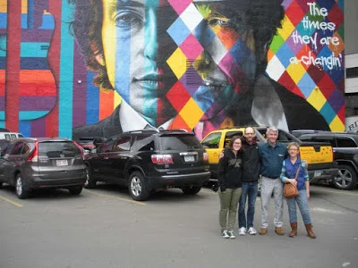 I was surprised at how popular the Mall of America became after it was completed in 1992. Over and over again I heard people from out-of-state say they were looking forward to visiting it when coming to Minnesota. Now, there is a second attraction that seems to be generating out-of-state buzz and even international chatter. It's the new Dylan mural in downtown Minneapolis, and having visited it this past weekend with my family I can see why. It's an impressive tribute to the legendary Minnesota-born singer-songwriter.